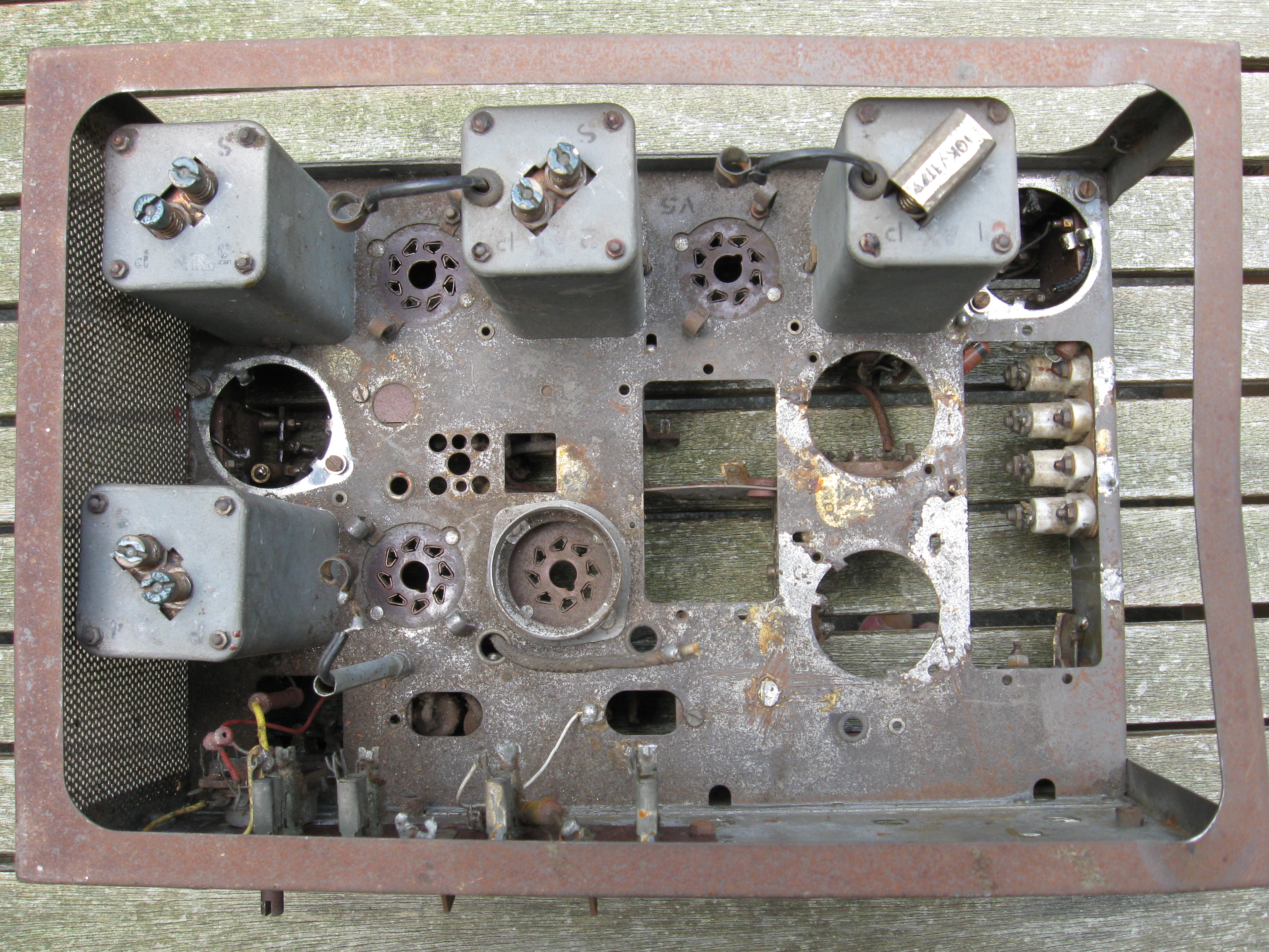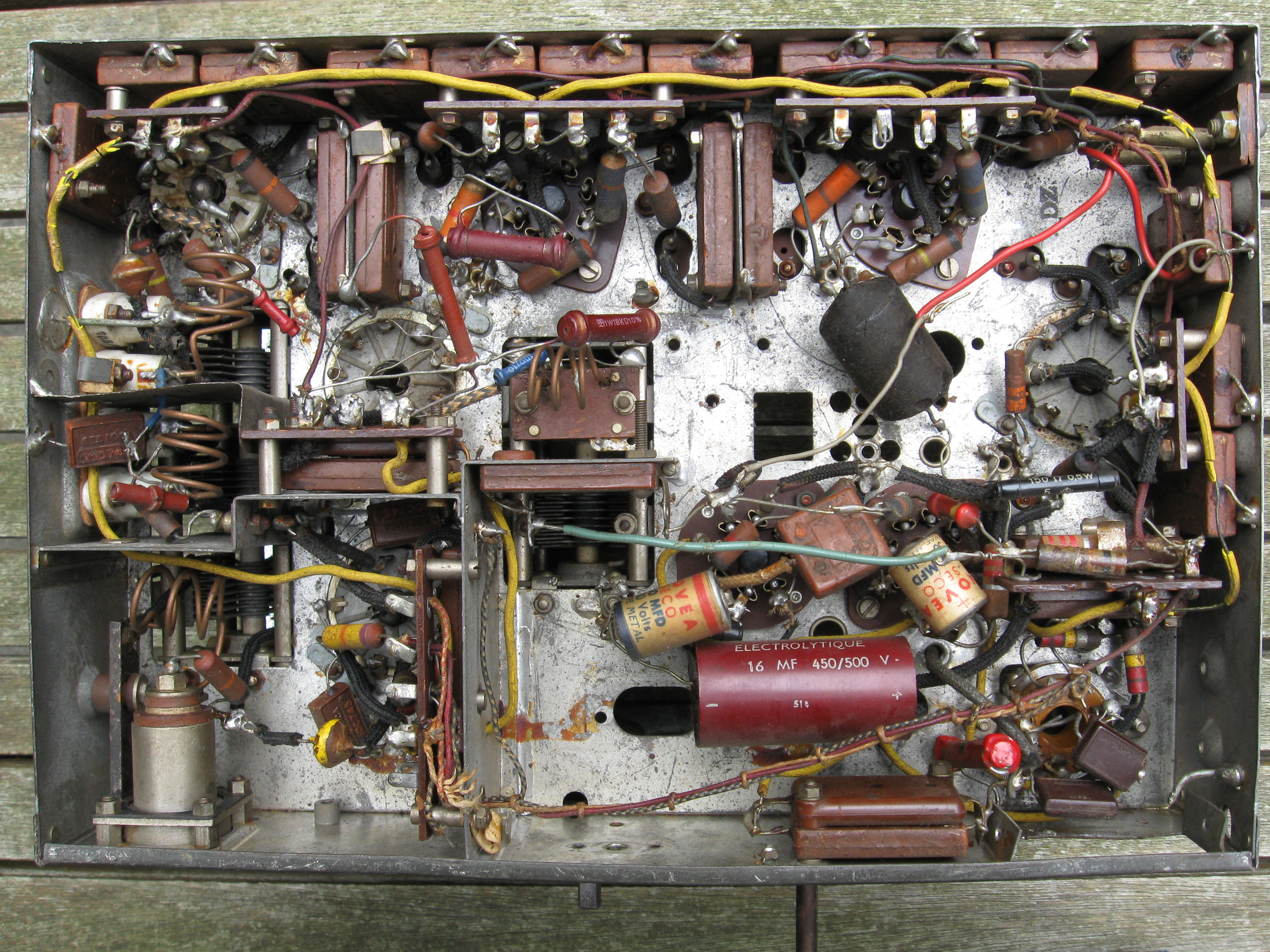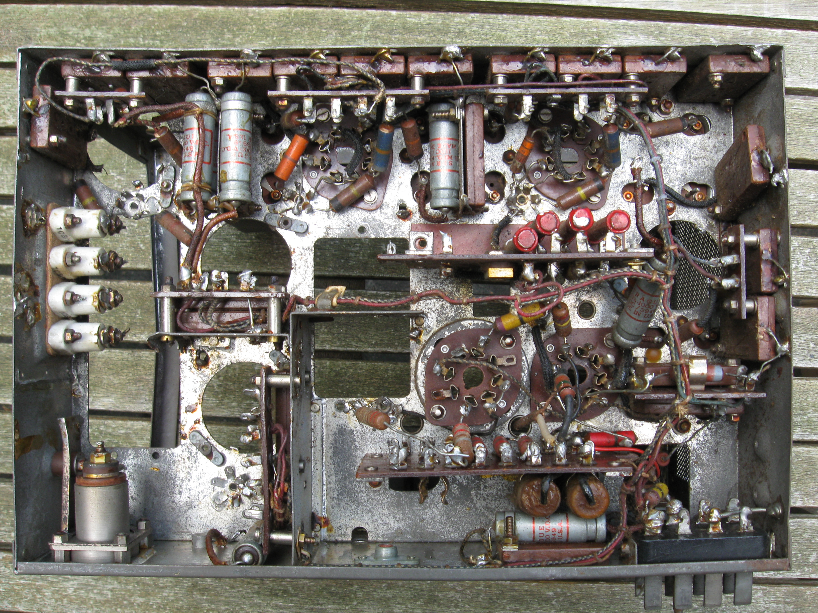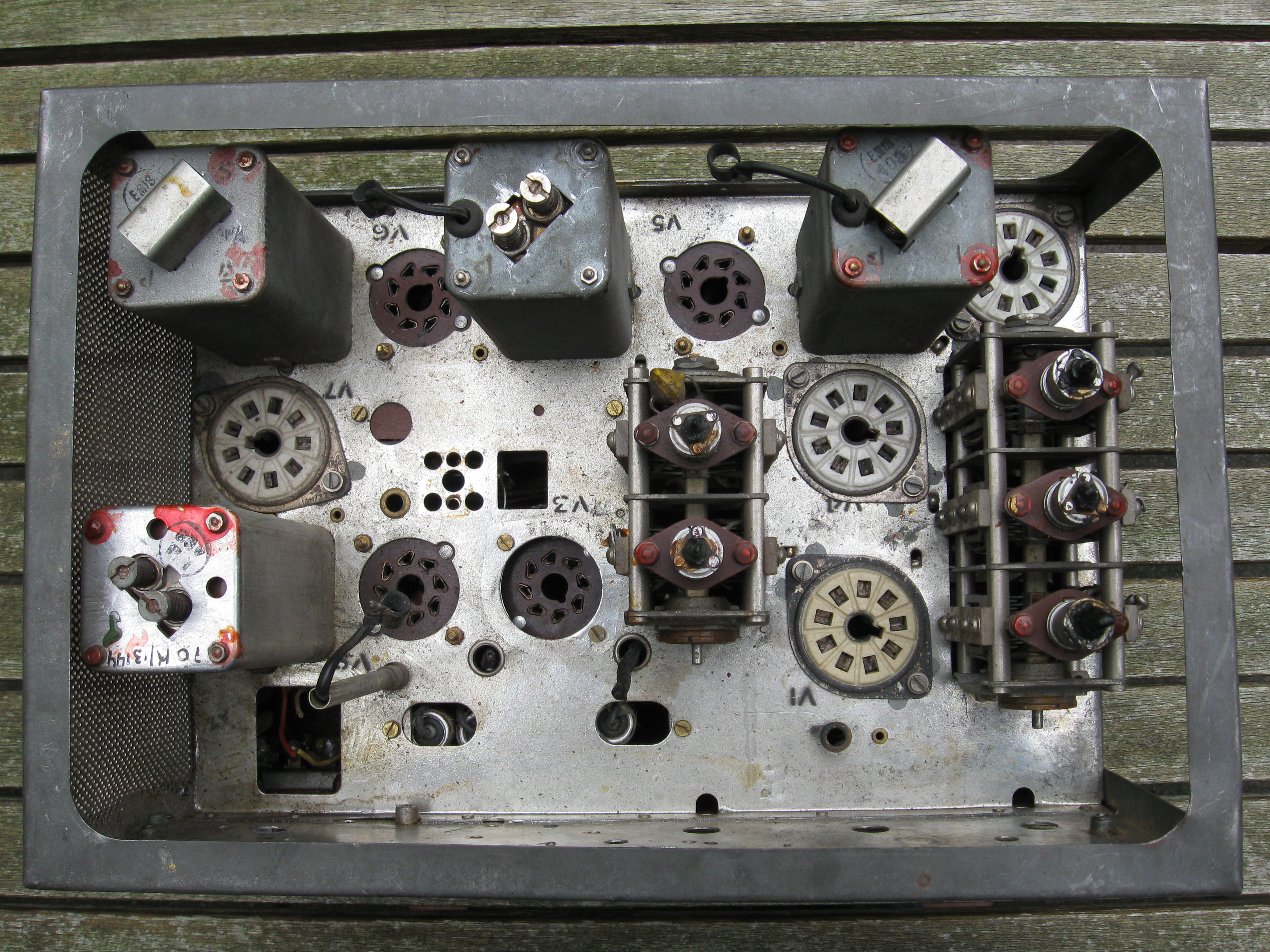 This receiver was probably used for spareparts. There is not much left except for some tube bases and mf filters.