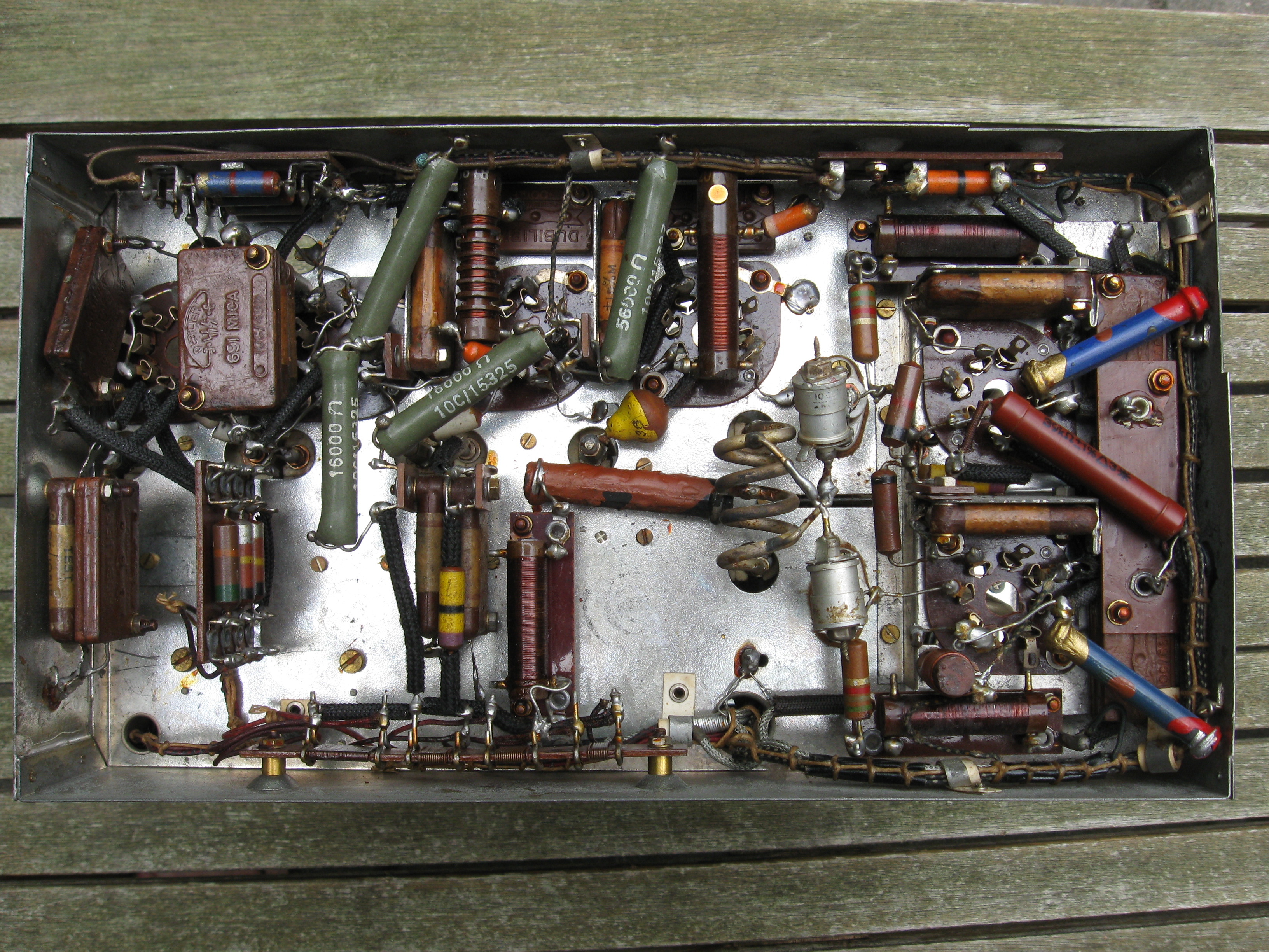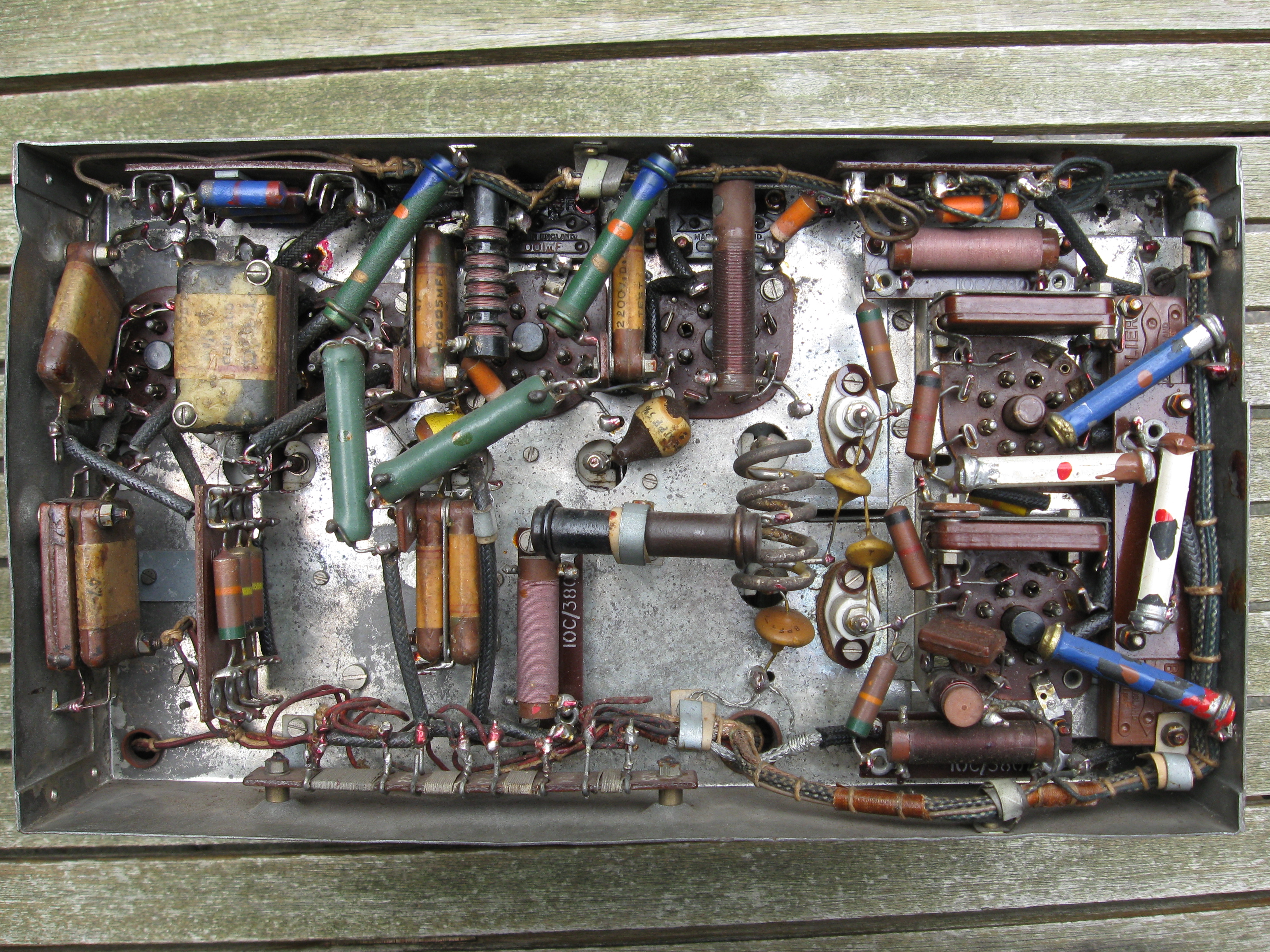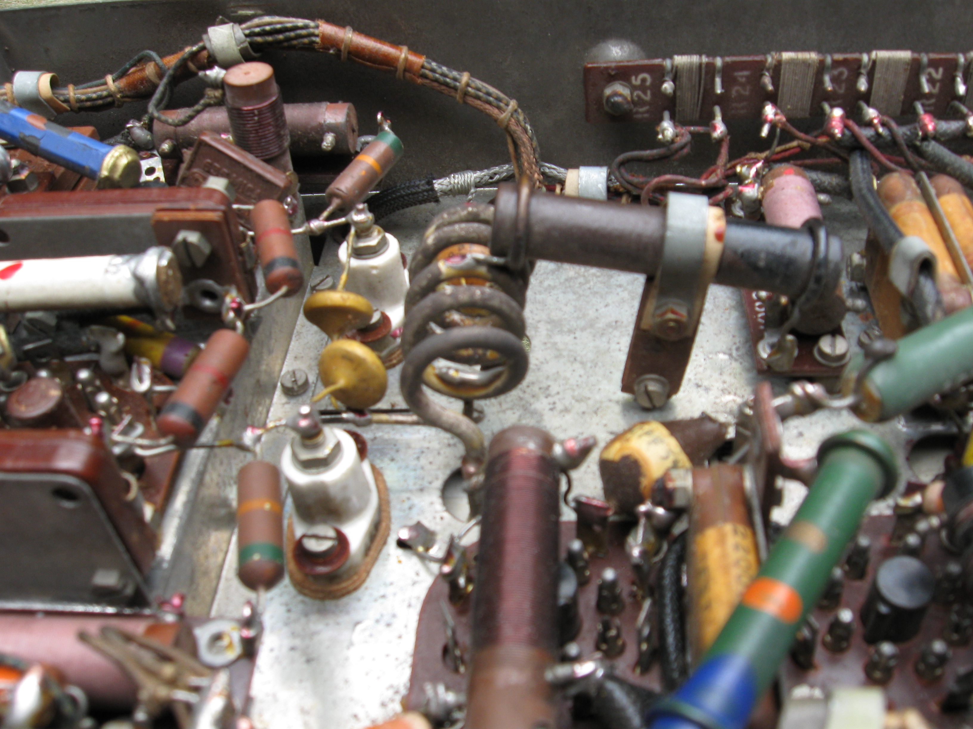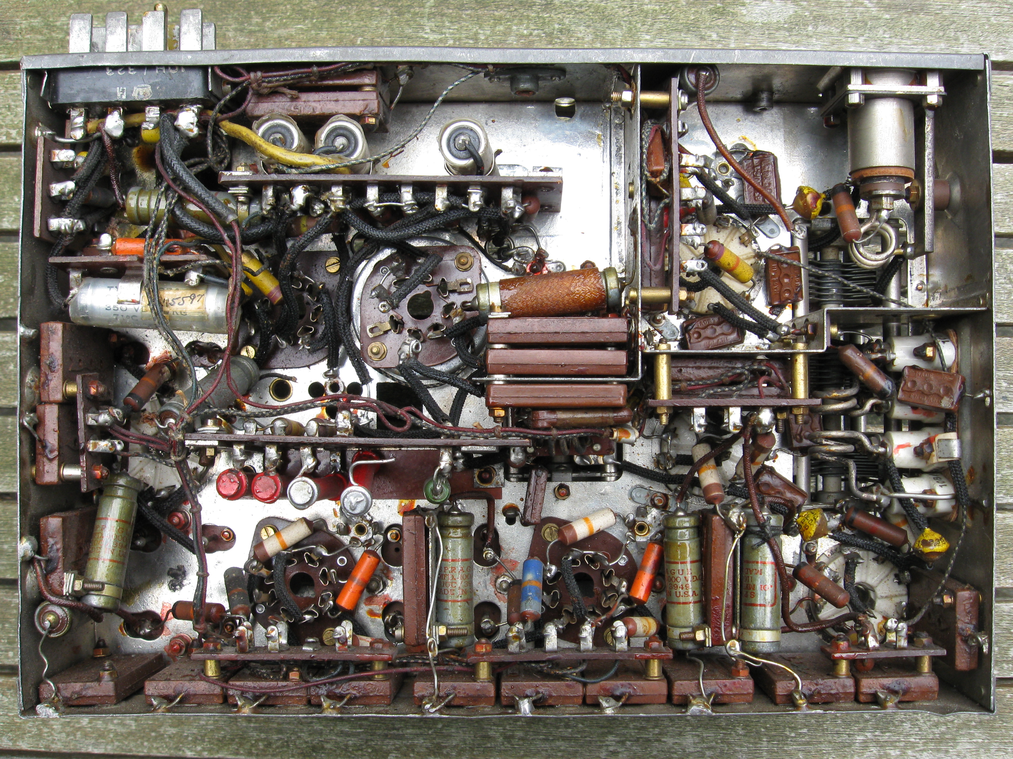 This receiver was probably used for spareparts. There is not much left except for some tube bases and mf filters.