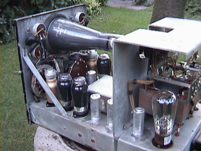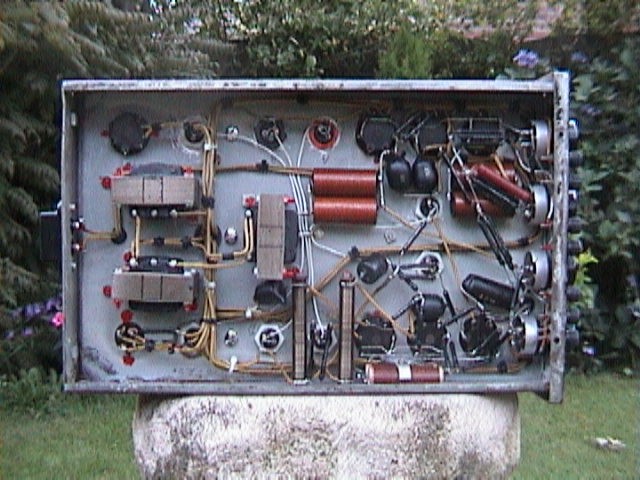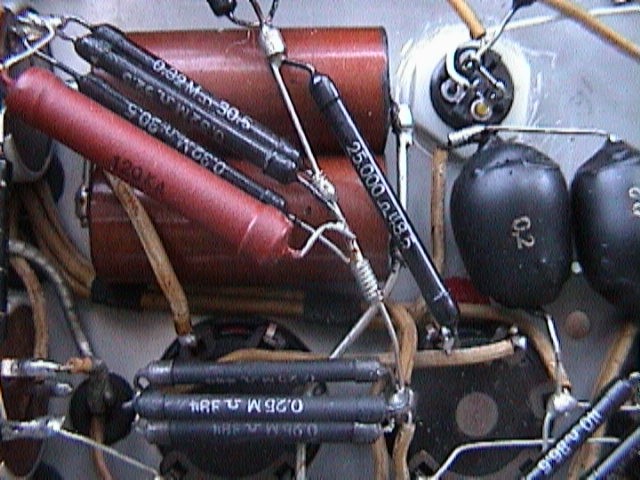 I found the GM3150 on the VERON radio-fleamarket (1999-03-13), not knowing how old it was but it looked nice to me and it was only 25 Dutch Guilders (10 US$). A sign stated: 'only the tubes are worth buying it'. It was very heavy and I had to carry it a long distance to my car. At home when I took a good look, it was clearly to see that all electrolytic capacitors were leaking all over the chassis. Also all tubes, except for the high voltage rectifier and maybe the crt were ok. The rest of the tubes were dead according to my tubetester. So I bought some new electrolytic capacitors and all the tubes that that had to be replaced. I cleaned the chassis and plugged it in the mains with the tubes left out. I checked the filament voltage of the tubes to see if the mains voltage selection was set ok. It was. So I placed the tubes in position and I did it again. Wow! The tubes were on and the dc supply voltage was also present. I turned all the switches to see if I could get something on the screen. Ok, something was there. I could see that in some cases there is even something like a sweep but it was not much. No response to the input either. Of course, a lot of old capacitors will have to be replaced etc. Actually it was not very wise of me to plug it in already but I was so curious that I did it anyway. At this time I had no information about the GM3150 at all. Only somewhere on the chassis, in pecil, was written: GM3150